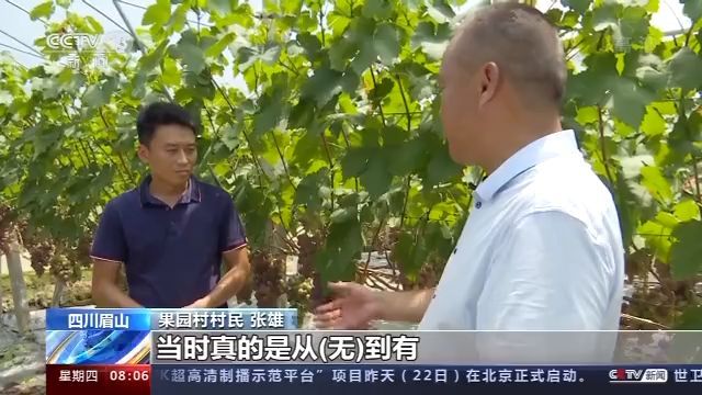 W ostatnich latach wioska Guoyuan, w mieście Meishan w prowincji Syczuan, dzięki nasadzeniom winorośli stworzyła przemysł o wartości wyjściowej setek milionów juanów. Obecnie trwa dobry czas na sprzedaż winogron, a wioska Guoyuan wita kupców z całego świata.