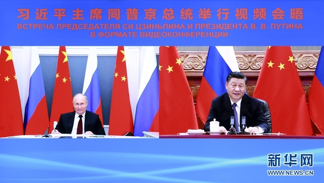 Przewodniczący Chin Xi Jinping odbył w poniedziałek, w Pekinie spotkanie wideo z prezydentem Rosji Władimirem Putinem.