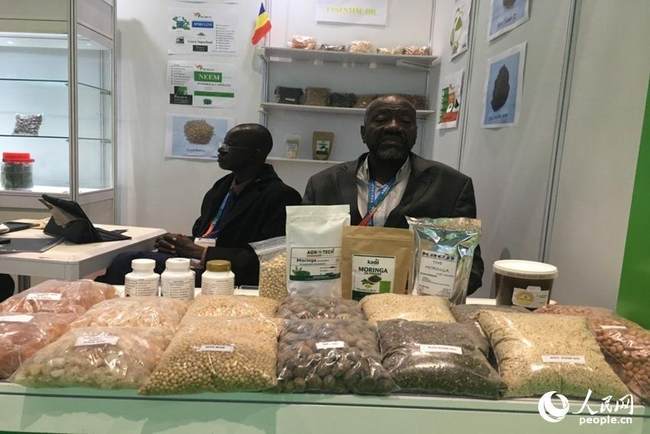 Wystawcy afrykańscy biorący udział w pierwszej edycji China International Import Expo wystawiają swoje towary.