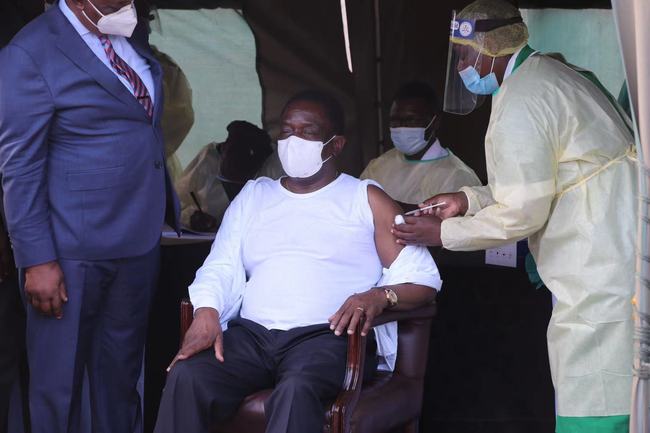24 marca prezydent Zimbabwe Emmerson Mnangagwa został zaszczepiony szczepionką na koronawirusa wyprodukowaną w Chinach. Mnangagwa wysoko ocenił wsparcie i pomoc Chin w walce Zimbabwe z epidemią. Wezwał ludzi do aktywnego szczepienia w celu promowania ożywienia gospodarczego i rozwoju turystyki.