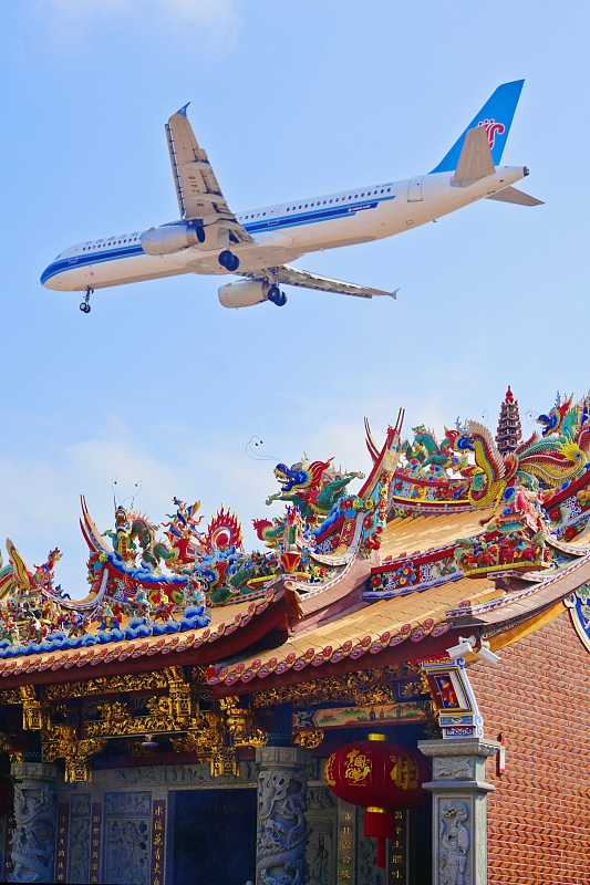 Qingshuigong znajduje się w pobliżu ruchliwego lotniska Xiamen Gaoqi, dlatego pojawia się w jej okolicy wiele nisko latających lądujących i startujących samolotów, które tworzą wokół świątyni „magiczny” spektakl. (S.S.)