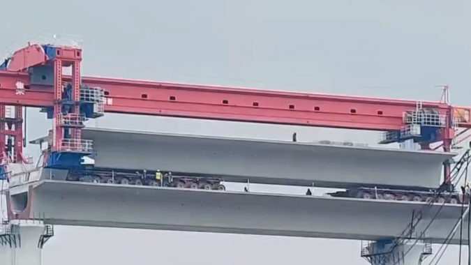 W Qidong w prowincji Jiangsu chińscy robotnicy budują linię kolei dużych prędkości.