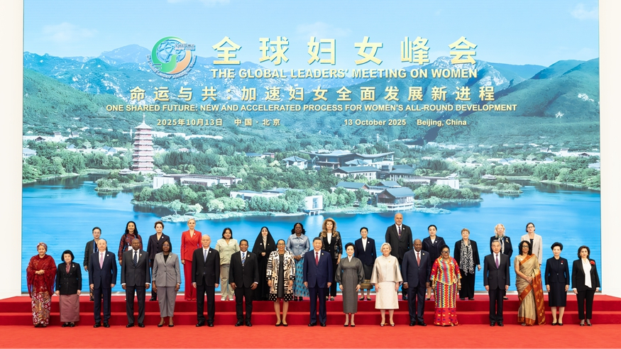 Xi Jinping i Peng Liyuan na grupowym zdjęciu z gośćmi Globalnego Szczytu Kobiet