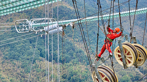 Energetycy układają linie w ramach projektu linii przesyłowej UHVDC Gansu-Zhejiang