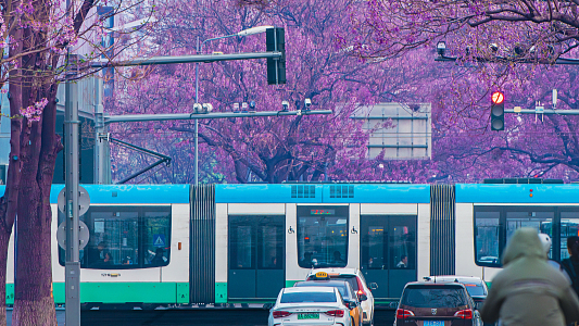 Kwitnąca aleja drzew Paulownia