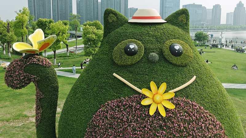 Hangzhou: „Zielony gigantyczny kot” popularnym miejscem do robienia zdjęć