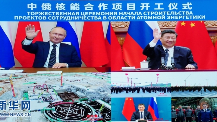 Szefowie Chin i Rosji są świadkami ceremonii rozpoczęcia projektu współpracy w dziedzinie energetyki jądrowej między obydwoma krajami