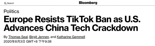Bloomberg poinformował, że rzecznicy rządów Wielkiej Brytanii i Francji stwierdzili, że nie ma planu wprowadzenia zakazu używania Tik Toka w ich krajach. Rzecznik brytyjskiego premiera powiedział, że premier Boris Johnson nie rozmawiał na ten temat z prezydentem Donaldem Trumpem. Ponadto niemiecki urzędnik rządowy powiedział, że Niemcy nie znalazły żadnych oznak, że Tik Tok stanowi zagrożenie dla bezpieczeństwa, ani nie planują także zakazać użytkowania tej aplikacji.