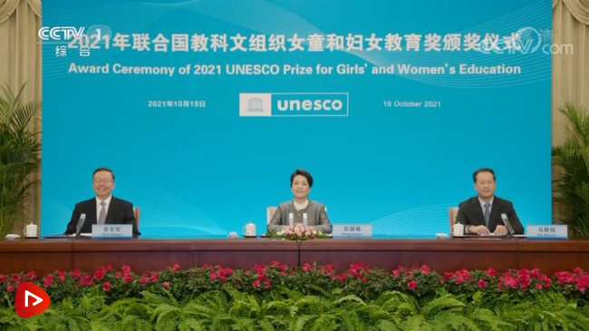Żona przewodniczącego Xi Jinpinga i specjalny wysłannik UNESCO ds. edukacji dziewcząt i kobiet, Peng Liyuan, została zaproszona do wzięcia udziału w ceremonii wręczenia nagród UNESCO w dziedzinie edukacji dziewcząt i kobiet w 2021 r. i wygłoszenia przemówień w Pekinie po południu 15 października.