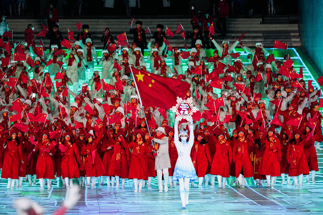Piątek, przemarsz Chińskiej Reprezentacji Olimpijskiej podczas ceremonii otwarcia XXIV Zimowych Igrzysk Olimpijskich Pekin 2022. (Zdjęcie: CFP)