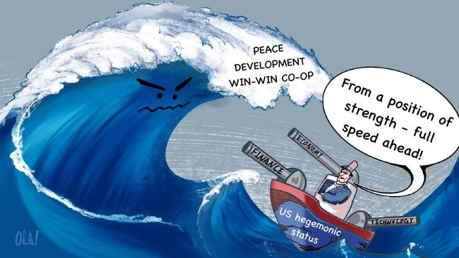 W rzeczywistości to Stany Zjednoczone nadużywają swojej hegemonii gospodarczej, finansowej i technologicznej jako dźwigni do powstrzymywania i tłumienia innych krajów oraz poszukiwania interesów geopolitycznych. Według raportu Departamentu Skarbu USA, od roku podatkowego 2021 w Stanach Zjednoczonych wprowadzono ponad 9400 sankcji, co stanowi prawie 10-krotny wzrost na przestrzeni 20 lat temu. Sekretarz stanu USA - Antony Blinken publicznie oświadczył, że USA postępują z innymi krajami „z pozycji siły”.