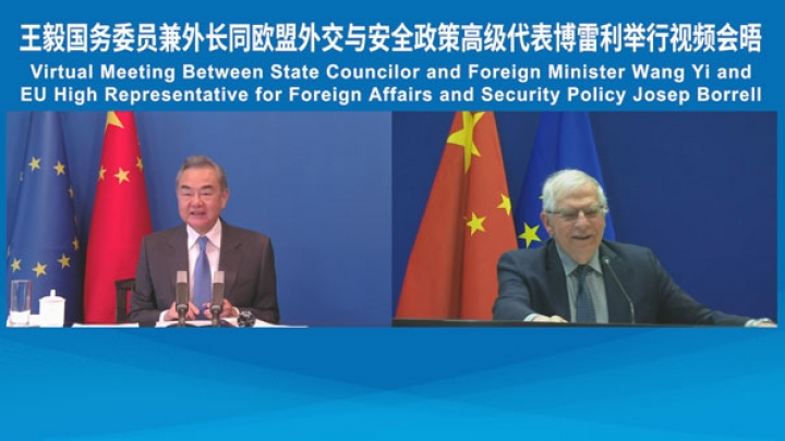 Spotkanie wideo między szefem dyplomacji Chin i Wysokim Przedstawicielem UE d/s Zagranicznych i Polityki Bezpieczeństwa