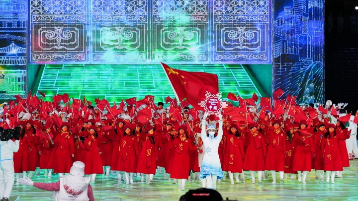 Chińska Reprezentacja podczas ceremonii otwarcia XXIV Zimowych Igrzysk Olimpijskich Pekin 2022
