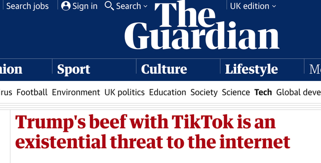 „The Guardian” poinformował, że legalność zarządzenia prezydenta USA Donalda Trumpa jest wątpliwa, ale w oczach niektórych amerykańskich polityków „Tik Tok musi być częścią operacji wywiadowczej”. Poza Stanami Zjednoczonymi, niektórzy politycy europejscy uważają również, że w związku z połączeniem TikToka z Chinami aplikacja ta „może stanowić zagrożenie dla bezpieczeństwa”.