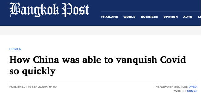Według tajskiej gazety, silne przywództwo Komunistycznej Partii Chin zapewniło, że prace antyepidemiczne utrzymują właściwy kierunek i strategię. Z kolei powodem, dla którego Stany Zjednoczone stały się krajem najbardziej dotkniętym epidemią, jest fakt, że rząd prezydenta Donalda Trumpa prawie „stracił siłę przywództwa” w walce z epidemią.