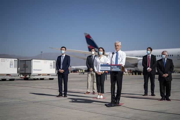 Prezydent Chile udał się na lotnisko, aby przyjąć transport chińskich szczepionek przeciw koronawirusowi, Chile rozpocznie masowe szczepienia w lutym