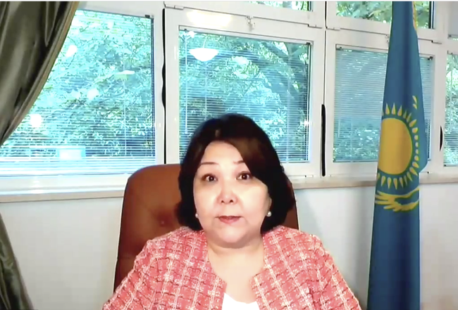 Stały Przedstawiciel Kazachstanu w Genewie, Zhanar Aytzhanova stwierdziła, że Kazachstan popiera utrzymanie i umacnianie ładu międzynarodowego opartego na Karcie Narodów Zjednoczonych i innych zasadach prawa międzynarodowego. Porządek ten jest niezastąpiony. Strona kazachska wyznaje zasadę nieingerencji w sprawy wewnętrzne innych państw.