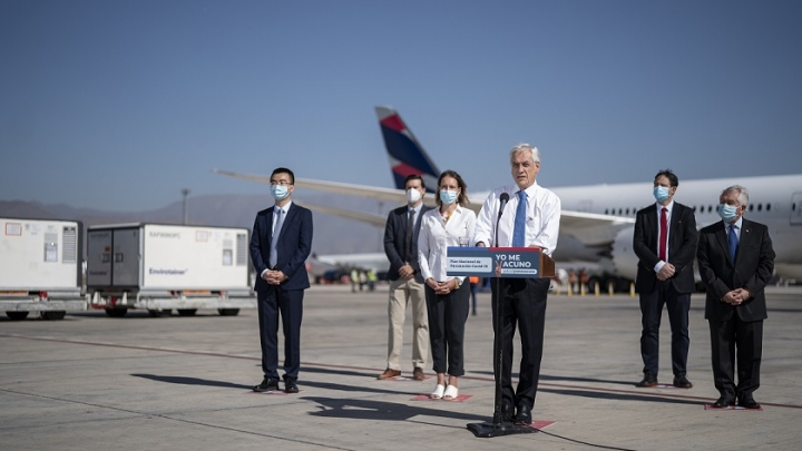 Prezydent Chile udał się na lotnisko, aby przyjąć transport chińskich szczepionek przeciw koronawirusowi, Chile rozpocznie masowe szczepienia w lutym