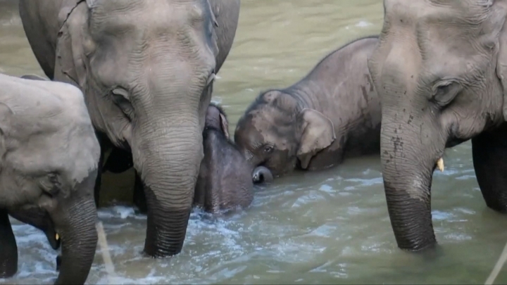 Nowe słoniątko w rodzinie dzikich słoni azjatyckich w Yunanie