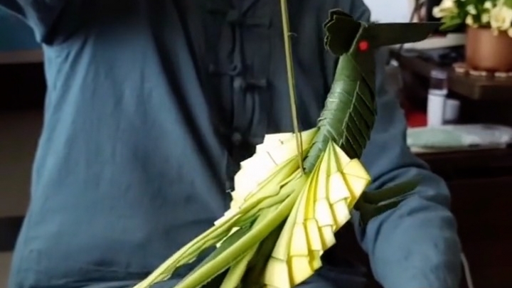 Siedemdziesięciolatek zajmuje się wyplataniem z liści palmowych