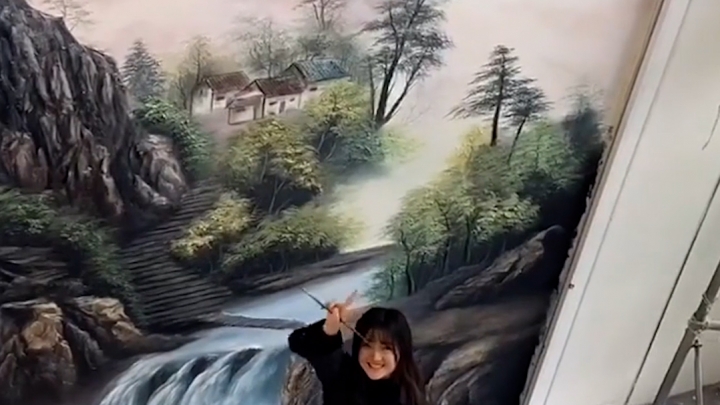 Młoda muralistka maluje szpachelką