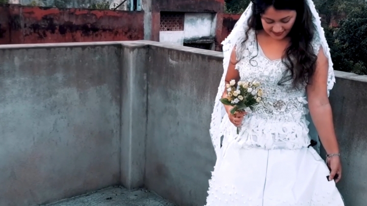 Pomysłowa dziewczyna uszyła suknię ślubną z papieru toaletowego