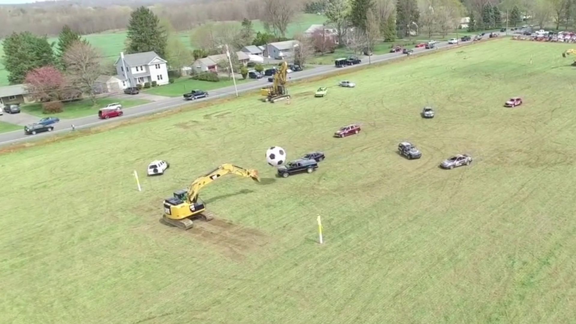 Koparka w roli bramkarza - strzelenie gola w tym meczu piłkarskim z udziałem samochodów może być trudne!