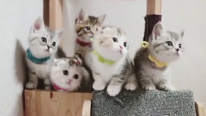 Oto urocze pięć kociąt! Ich ruchy są harmonijne, tak jakby były wyćwiczone